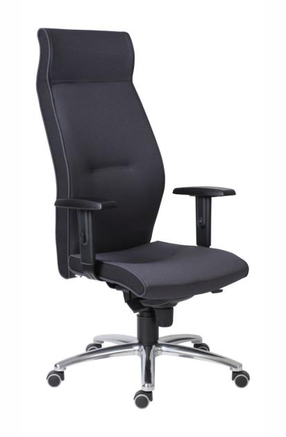 Extra vysoké operadlo, ergonomické tvarovanie sedáka a operadla, čalúnenie zo studenej peny, synchrónny mechanizmus ZEP s nastavením sily protiváhy, alumíniová leštená báza, kolieska s gumovou obručou pre všetky typy podláh, výškovo nastaviteľné podrúčky s mäkkou dotykovou plochou, 2 rozmery hĺbky sedadla, nosnosť 160 kg, záruka 60 mesiacov. Látka kategórie BN.