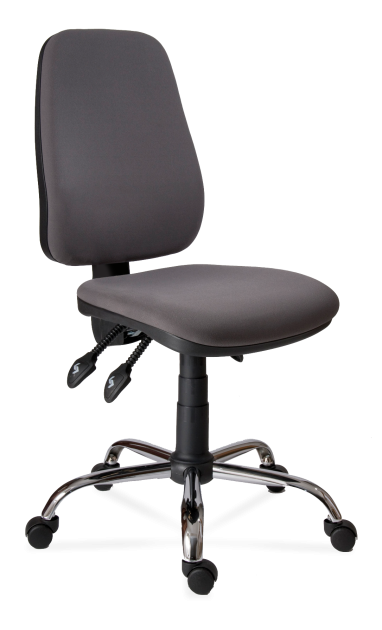 Kancelárska pracovná stolička so stredne vysokým operadlom, asynchrónny mechanizmus - nezávislé nastavenie uhla sedáka a operadla, nastavenie výšky operadla mechanizmom up-down, plynový piest, oceľová chrómovaná báza, kolieska priemeru 50mm pre mäkké podlahy, voliteľné podrúčky Nosnosť 130 kg, záruka 24 mesiacov. Povrch: látka kategórie BN.