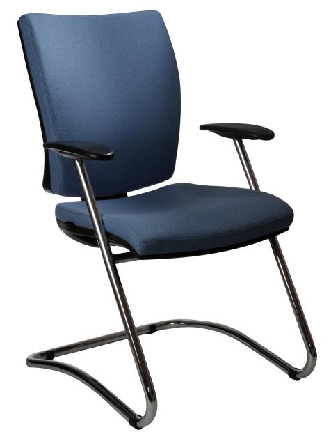 Konferenčná čalúnená stolička vrátane podrúčiek s mäkkou dotykovou plochou, čalúnenie z kvalitnej peny, oceľový chrómovaný rám lyžinového typu, stredne vysoké operadlo, nosnosť 120 kg, záruka 60 mesiacov. Povrch látka kategórie BN.