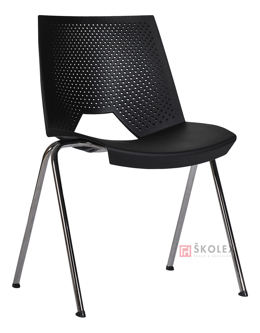 Moderná plastová stolička lastúrového tvaru, oceľová chrómovaná konštrukcia, možnosť stohovania (max. 10 kusov). Výška sedu 45cm. Odtiene plastov: modrá P 71, sivá P 72, oranžová P73, čierna P 74, červená P 75, piesková P76, zelená P 77, biela P 78. Nosnosť 120 kg, záruka 36 mesiacov, vyrobené v EU.