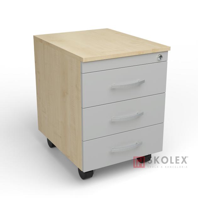 Kontajnery z kolekcie Dominika sú vyrobené z laminovanej drevotrieskovej dosky hr.18mm (výber zo vzorkovníka Farba korpusu a dvierok), hranené 2mm ABS na exponovaných častiach. Štandardné vyhotovenie skriniek je bez zámku, bez možnosti farebného vyhotovenia čela zásuviek. Za príplatok možnosť voľby zámku, farebných čiel zásuviek (Príplatková farba dvierok).