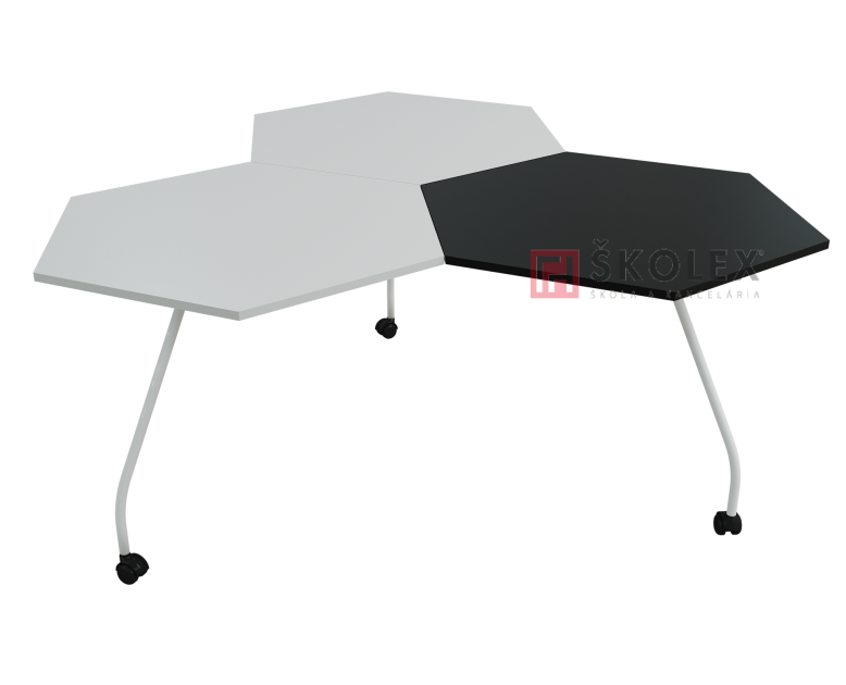 Dizajnový stôl Hexagon s rúrkovou podnožou D22mm, povrchová úprava vypaľovacia prášková farba (výber z RAL vzorkovníka), nohy stola ukončené pogumovanými kolieskami, tri laminované dosky hr. 18mm s ABS hexagonálneho tvar... (viac)