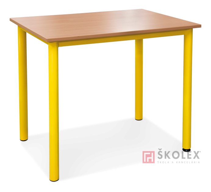 Nezničiteľné stoly s kovovou konštrukciou, farebnosťou prispôsobené pre malé deti. Všetky nohy rektifikovateľné. Pre ľahšiu manipuláciu je možné doobjednať kolieska.