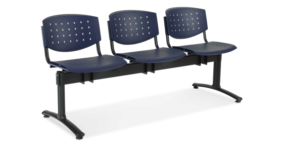 Viacmiestna lavica, čierny (PN) alebo šedy (PG) lakovaný kovový rám. Sedák a operadlo z plastu rôznych odtieňov (výber zo vzorkovníka). Sedadlo je možné nahradiť lakovaným preglejkovým odkladacím stolíkom (TAVO) (viac)