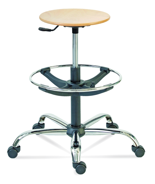 Výškovo nastaviteľná stolička bez opierky, určená do priestorov dielní a odborných učebien. Sedadlo z bukovej preglejky, chrómová základná báza, kolieska, možnosť objednať vo vyhotovení s výškovo nastaviteľným extendom (tanierom) pre oporu nôh. Nosnosť 130kg, záruka 24 mesiacov. Výška sedadla bez extendu: 43,5 - 56 cm. Výška sedadla s extendom 59 - 85 cm.