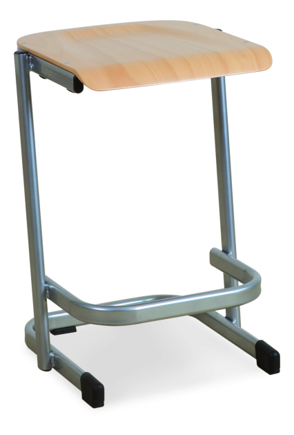 Pevná ocelová konštrukcia z plochooválneho profilu 38 x 20mm lakovaná práškovými farbami (komaxit) )-výber z 11tich farieb, nohy stoličky sú ukončené plastovými koncovkami s veľkou trecou plochou, ktoré tlmia hluk a nepoškodzujú podlahu. Sedák je z tvarovanej preglejky, nitovaný ku konštrukcii oceľovými nitmi priemeru 5mm.