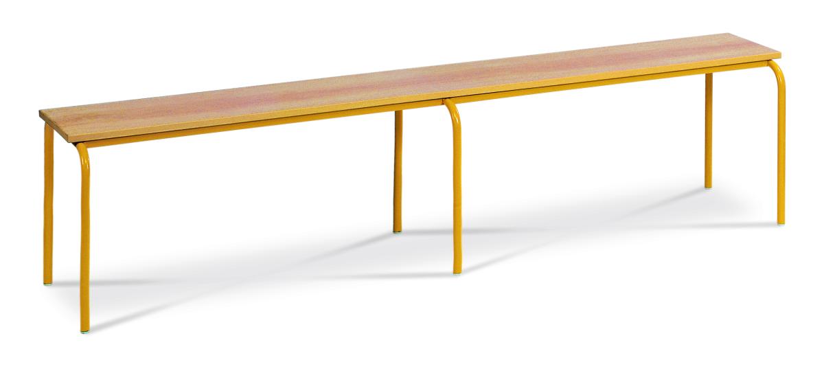 Kovová konštrukcia z rúrkového profilu Ø 22 mm lakovaná práškovými farbami (komaxit), výber z RAL vzorkovníka, nohy lavičky sú ukončené plastovými koncovkami. Sedacia časť je z LDT dosky hr. 18mm, 2 mm ABS hrana; ku kovovej konštrukcii je kotvená pomocou metrických skrutiek M6. Lavičky sú stohovateľné. Možnosť výberu veľkosti: 2, 3, 4, 5, 6 a jednostranného alebo obojstranného sedenia.
