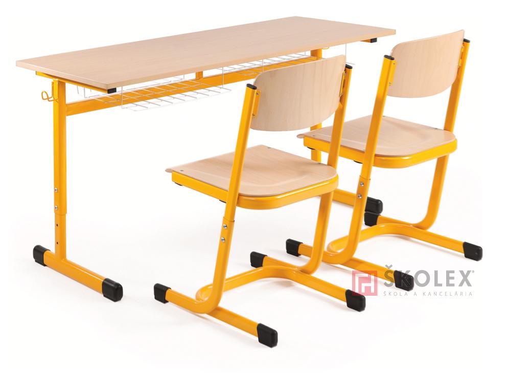 Set rastúcej školskej lavice a 2 stoličiek.