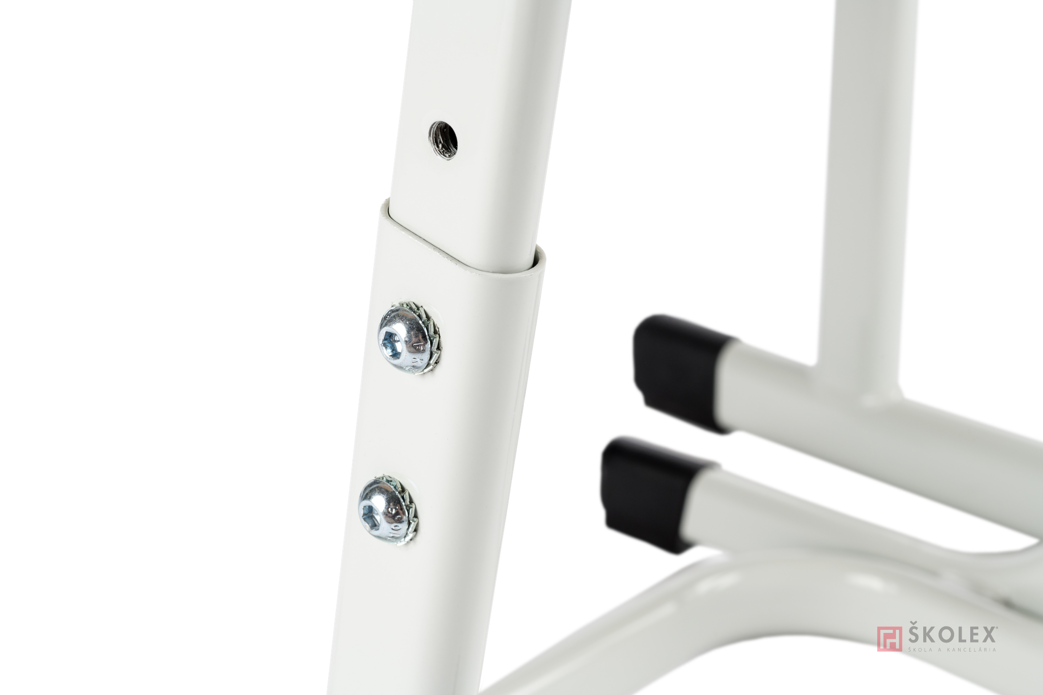 Školská stolička Saxana wood - kovová konštrukcia z plochooválneho profilu 38x20 mm lakovaná práškovými farbami (výber z RAL vzorkovníka), nohy stoličky ukončené plastovými koncovkami (plstená podložka za príplatok). Sedák a opierka zo 7-vrstvovej celobukovej tvarovanej preglejky, povrchovo upravenej kvalitnými polyuretánovými lakmi, prinitované ku konštrukcii oceľovými nitmi priemeru 5 mm. Stoličky sú stohovateľné, dostupné v dvoch veľkostiach 3 - 5 alebo 5 - 7. Výškové nastavenie pomocou imbusového kľúča na veľkosti 3, 4, 5 alebo 5, 6, 7.