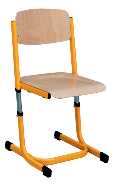 Kovová konštrukcia z plochooválneho profilu 38 x 20 mm lakovaná práškovými farbami (komaxit), výber podľa vzorkovníka RAL, nohy stoličky sú ukončené plastovými koncovkami, ktoré tlmia hluk a nepoškodzujú podlahu. Sedák a opierka sú vyrobené zo 7-vrstvovej celobukovej tvarovanej preglejky, povrchovo upravenej kvalitnými polyuretánovými lakmi. Sedáky a opierky sú prinitované ku konštrukcii oceľovými nitmi priemeru 5 mm. Stoličky sú stohovateľné. Kovová konštrukcia je vybavená jednoduchým mechanizmom, ktorý umožňuje výškové nastavenie. Dostupná v dvoch veľkostiach 3 - 5 a 4 - 6.