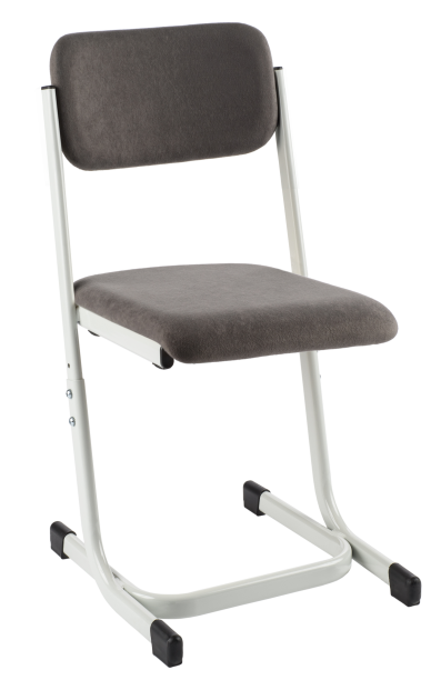 Pevná oceľová konštrukcia z plochooválneho profilu 38 x 20 mm lakovaná práškovými farbami (komaxit), výber RAL farby podľa vzorkovníka, nohy stoličky sú ukončené plastovými koncovkami s veľkou trecou plochou, ktoré tlmia hluk a nepoškodzujú podlahu. Sedák a opierka sú čalúnené šedou látkou. Stoličky sú stohovateľné. Jednoduchá výšková nastaviteľnosť pomocou imbusového kľúča.