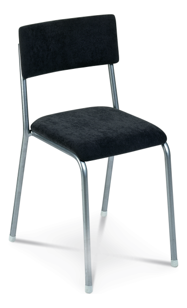 Kovová konštrukcia z rúrkového profilu Ø 22 mm lakovaná práškovými farbami (výber zo vzorkovníka RAL farieb), nohy stoličky sú ukončené plastovými koncovkami. Sedák a opierka sú vyrobené z celobukovej tvarovanej preglejky, čalúnené oteruvzdornou sivou látkou (pri objednávke viac ako 20 ks možnosť výberu inej farby čalúnenia - podľa vzorníka) . Sedáky a opierky sú priskrutkované ku konštrukcii metrickými skrutkami M6. Stoličky sú stohovateľné. Dostupná vo veľkosti č. 6.