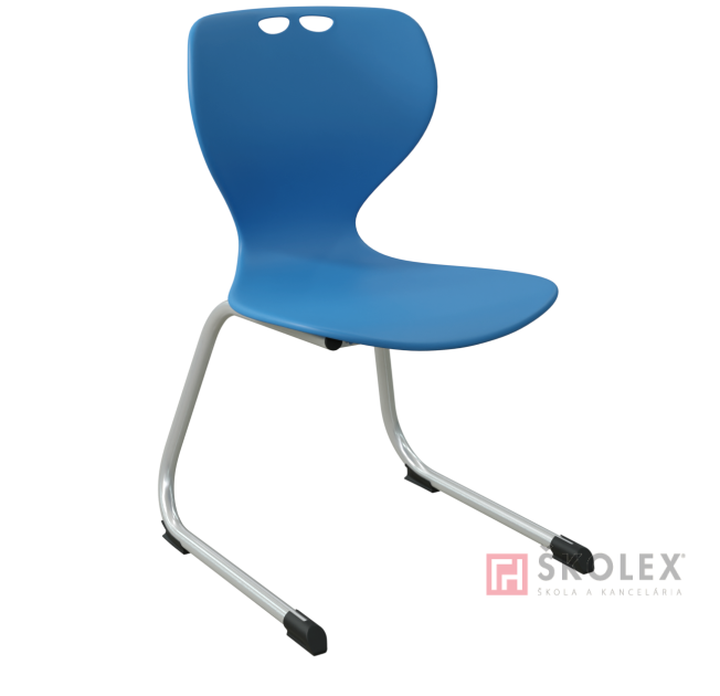 Moderná stolička s ergonomicky tvarovanou plastovou mušľou z polypropylénu, ktorá umožňuje komfortné a flexibilné sedenie. Lyžinová konštrukcia z rúrkového profilu priemeru 21mm, spevneného pod plastovou mušľou jäklovým profilom 10x20mm. Konštrukcia nôh ukončená plastovými klzákmi. Maximálna šírka stoličky 41,5cm (vo veľkostiach 3, 4), 48cm (vo veľkosti 5).