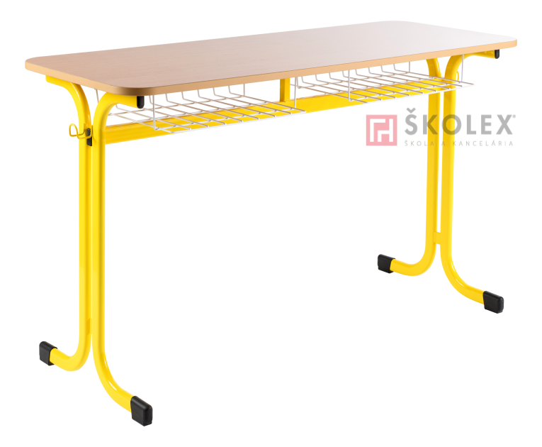 Kovová konštrukcia vysokej pevnosti vyrobená z plochooválneho profilu 38 x 20 mm, lakovaná práškovými farbami rôznych odtieňov, nohy sú ukončené plastovými koncovkami s veľkou trecou plochou, ktoré tlmia hluk a nepoškodzujú podlahu. Pracovná doska stola 130 x 50 cm je z drevotriesky hr.18 mm, povrch melamín - buk, (zaoblené hrany dosky R 70 mm) priskrutkovaná ku konštrukcii 4 metrickými skrutkami M6 (pomocou zalisovaných oceľových puzdier); hrany dosky stola sú chránené 2 mm ABS hranou. Odkladací priestor stola je riešený hygienickým drôteným košíkom (neusadzuje sa prach), lakovaný komaxitovou farbou, 2 vešiačiky na zavesenie tašiek. K školským stolom LUX sú vhodné školské stoličky LAVA,SOKRATES, školská katedra LUX alebo UNO a učiteľské stoličky SOKRATES čalúnené.