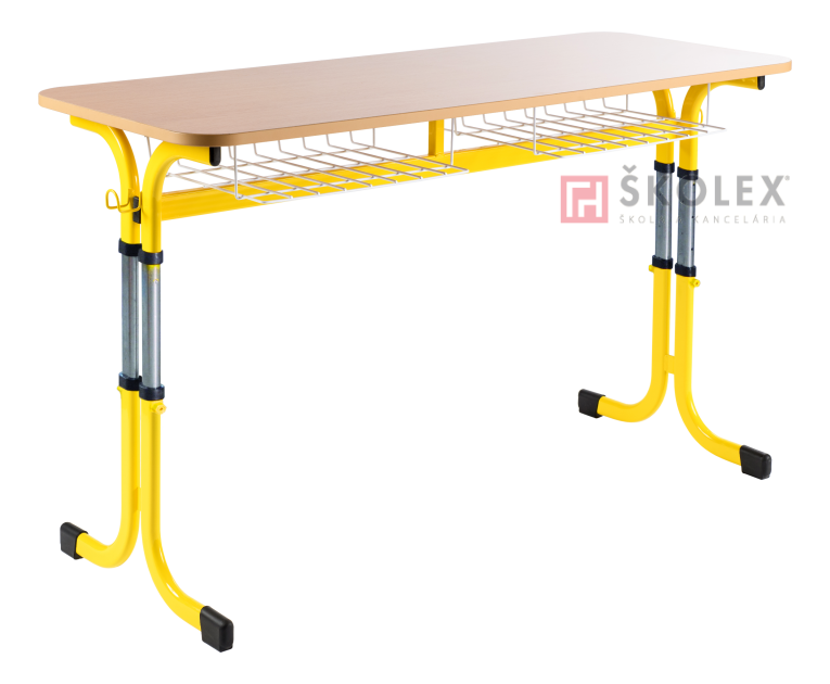 Kovová konštrukcia vysokej pevnosti vyrobená z odľahčeného plochooválneho profilu 38 x 20 mm, lakovaná práškovými farbami rôznych odtieňov, nohy sú ukončené plastovými koncovkami s veľkou trecou plochou, ktoré tlmia hluk a nepoškodzujú podlahu. Pracovná doska stola 130 x 50 cm je z drevotriesky hr.18 mm, povrch melamín - buk (zaoblené hrany dosky R 70 mm) priskrutkovaná ku konštrukcii 4 metrickými skrutkami M6 (pomocou zalisovaných oceľových puzdier); hrany dosky stola sú chránené 2 mm ABS hranou. Odkladací priestor stola je riešený hygienickým drôteným košíkom (neusadzuje sa prach), lakovaný práškovou vypaľovanou farbou, 2 vešiačiky na zavesenie tašiek. Kovová konštrukcia je vybavená jednoduchým mechanizmom, ktorý umožňuje výškové nastavenie zo základnej veľkosti č. 3 na veľkosti 4, 5 a 6. K školským stolom LUX sú vhodné školské stoličky LAVA výškovo nastaviteľné, školská katedra LUX alebo UNO a učiteľské stoličky LAVA čalúnená, SOKRATES čalúnená.