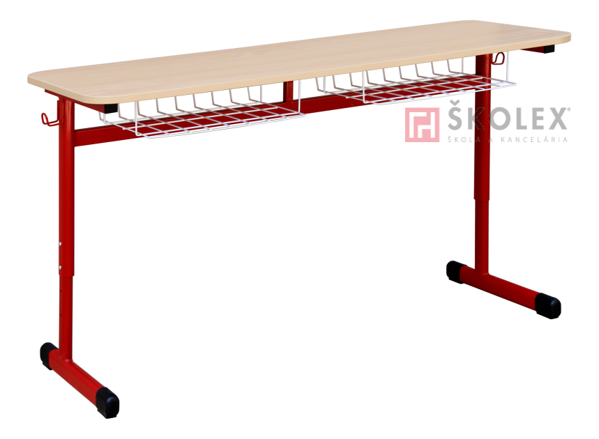 Kovová konštrukcia vysokej pevnosti vyrobená z plochooválneho profilu 50 x 30 mm, lakovaná práškovými farbami rôznych odtieňov, nohy sú ukončené plastovými koncovkami s veľkou trecou plochou, ktoré tlmia hluk a nepoškodzujú podlahu. Pracovná doska stola 130 x 50 cm je z drevotriesky hr.18 mm, povrch melamín - buk, (zaoblené hrany dosky R 70 mm) priskrutkovaná ku konštrukcii 4 metrickými skrutkami M6 (pomocou zalisovaných oceľových puzdier); hrany dosky stola sú chránené 2 mm ABS hranou. Odkladací priestor stola je riešený hygienickým drôteným košíkom (neusadzuje sa prach), lakovaný komaxitovou farbou, 2 vešiačiky na zavesenie tašiek. Stoly sú výškovo nastaviteľné od veľkosti 3 po veľkosť 7. K školským stolom TITAN rastúcim sú vhodné školské stoličky SAXANA, LAVA rastúce, školská katedra TITAN, LUX a učiteľské stoličky LAVA, SOKRATES čalúnené.