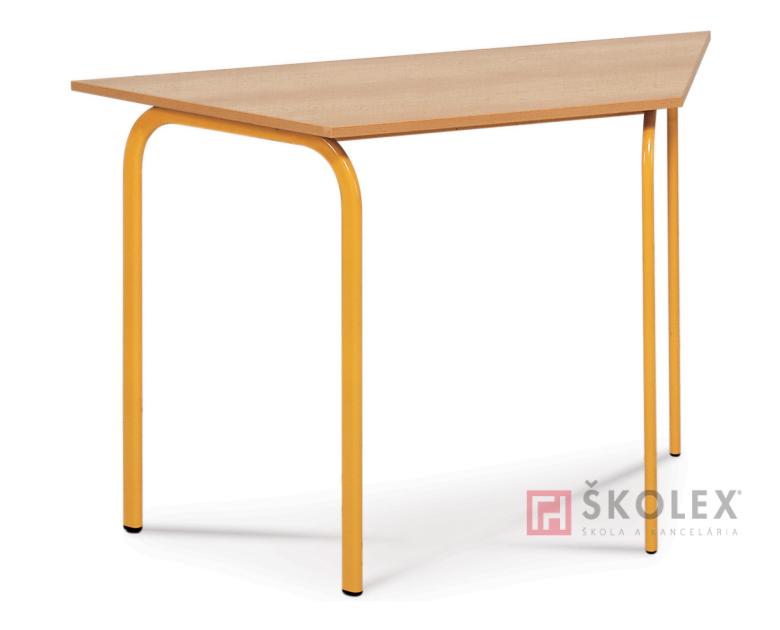 Stô lichobežníkového tvaru do variabilných zostáv, konštrukcia z plochooválu 38x20mm lakovaná práškovými farbami (výber zo vzorkovníka RAL), nohy ukončené plastovými koncovkami, doska 120x52 cm hr. 18mm, 2mm ABS. Veľkosť 3, 4, 5, 6.