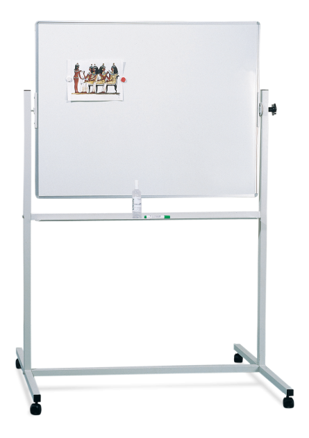 Dvojnásobný tabuľový priestor. Jedoduchým pohybom ju preklopíte do potrebnej pozície a zaistíte. Má priestornú odkladaciu lištu na písacie potreby, magnety a iné pomôcky. Je pojazdná na kovovej konštrukcii na kolieskach s brzdou. Samotná tabuľa je rámovaná v hliníkovom ráme povrchovo upravenom prírodným eloxom so zaoblenými plastovými rohmi sivej farby. Magnetický povrch tabule môže byť: